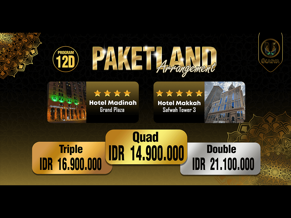 Paket LA 12 Hari - Madinah 5 Malam (Grand Plaza *4) & Makkah 5 Malam (Safwah Tower 3 *5)