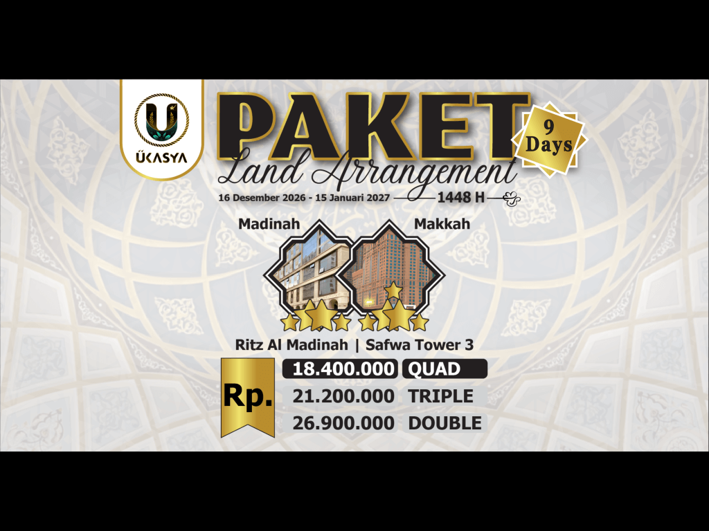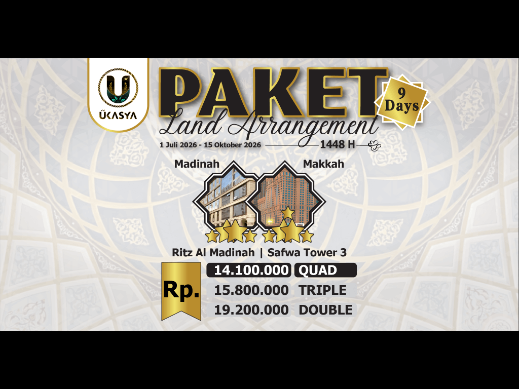 Paket LA 9 Hari - Madinah 3 Malam (Ritz Al Madinah *4) & Makkah 4 Malam (Safwah Tower 3 *5)