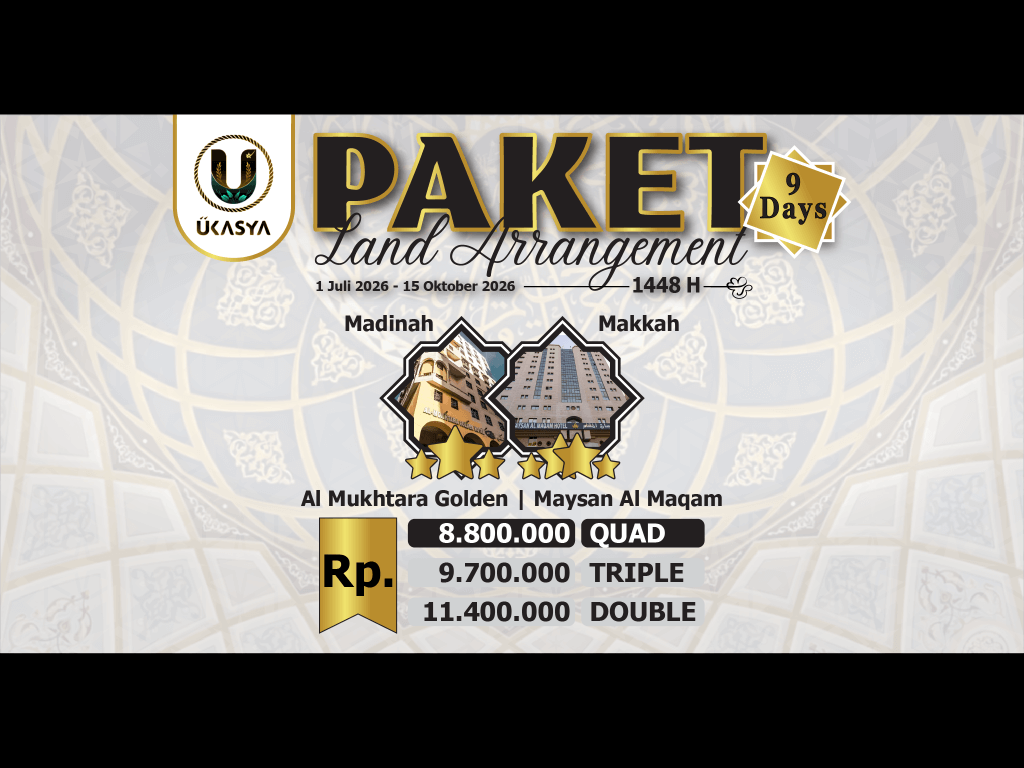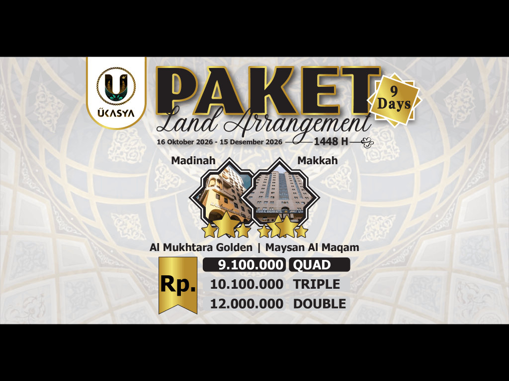 Paket LA 9 Hari - Madinah 3 Malam (Al Mukhtara Golden *3) & Makkah 4 Malam (Maysan Al Maqam *4)