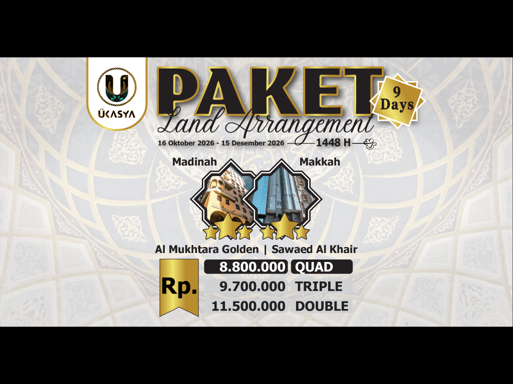 Paket LA 9 Hari - Madinah 3 Malam (Al Mukhtara Golden *3) & Makkah 4 Malam (Sawaed Al Khair *3)