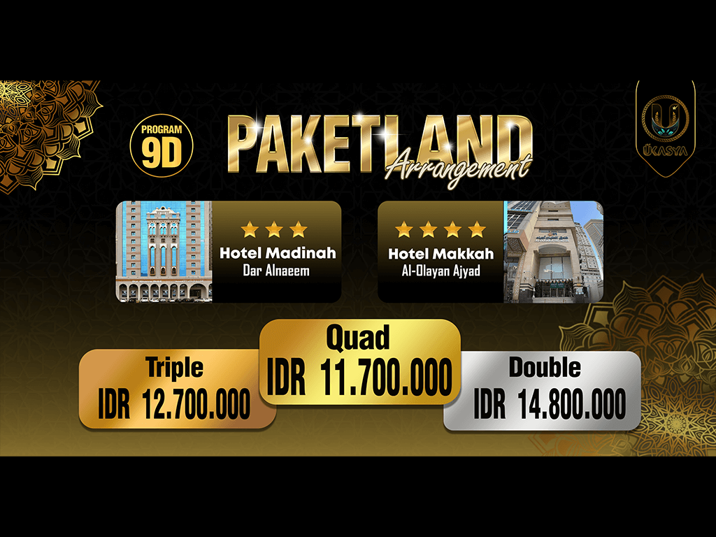 Paket LA 9 Hari - Madinah 3 Malam (Dar Al Naem *3) & Makkah 4 Malam (Olayan Ajyad *4)